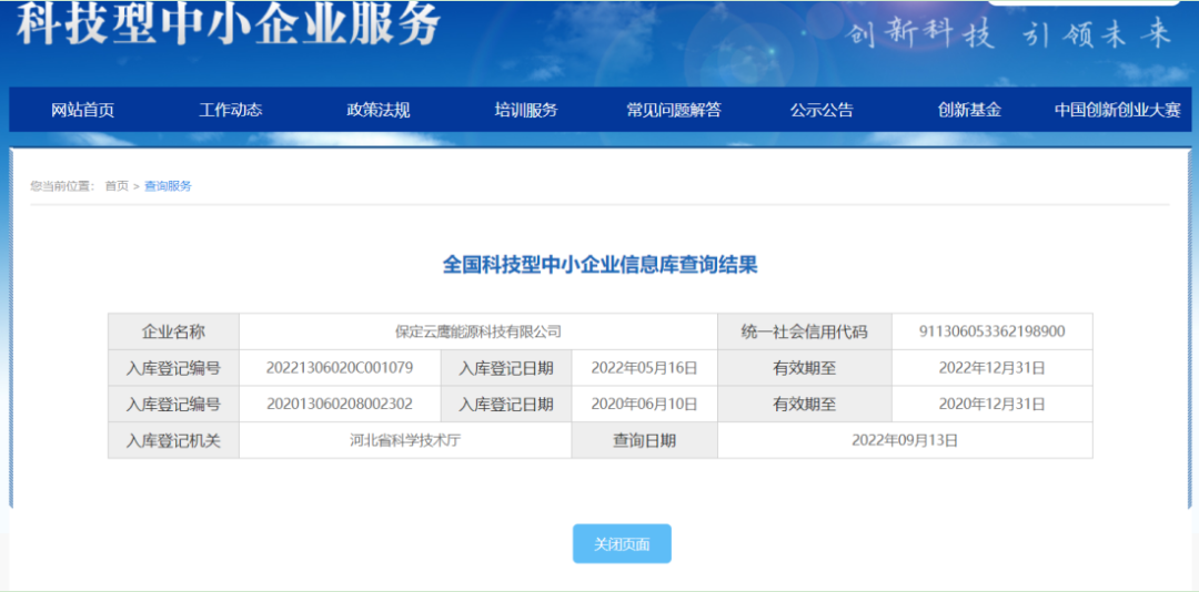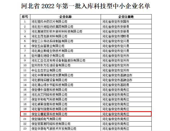日前,河北省科技廳官網公告顯示,云鷹運維成為河北省2022年第一批進入“科技型中小企業信息庫”企業,納入全國科技型中小企業庫管理,彰顯了公司在新能源電站智慧運維技術領域的突出表現。